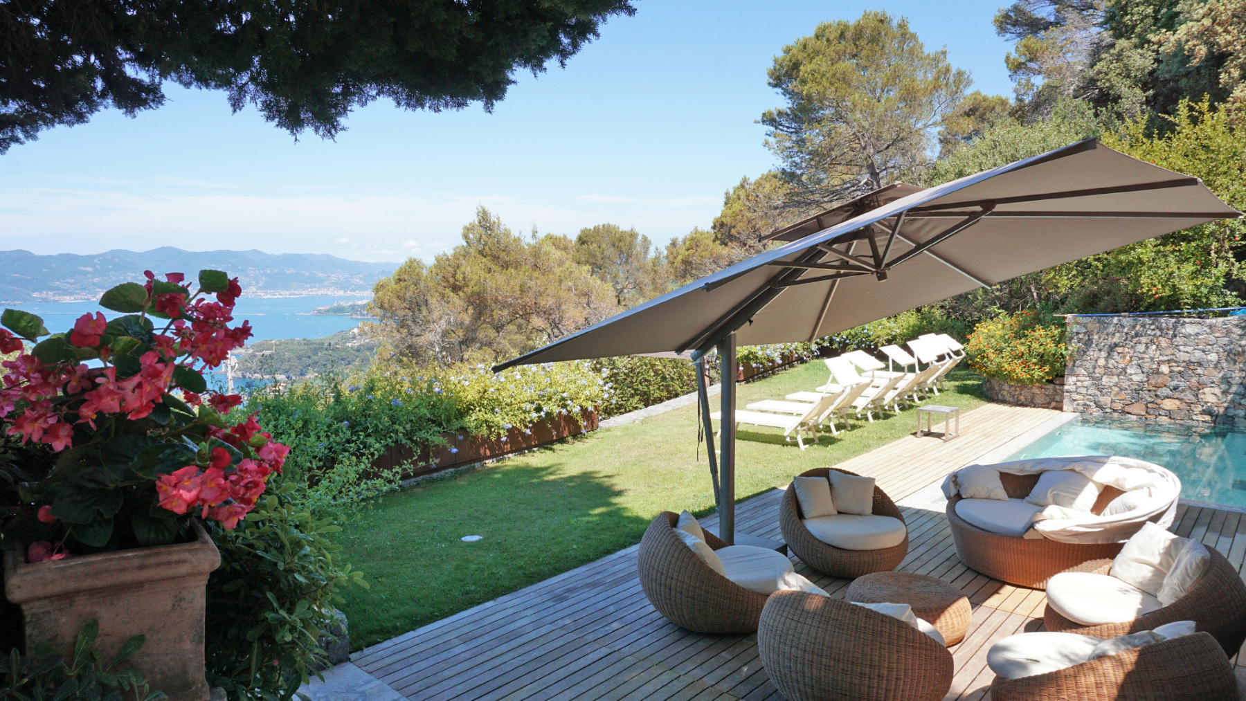 Grazie alla sua posizione strategica, la villa consente di raggiungere facilmente le spiagge di Lerici e le principali attrazioni della zona, come Portovenere e le Cinque Terre, rendendola una scelta ideale per chi cerca una villa in affitto in Liguria con piscina e vista mare.