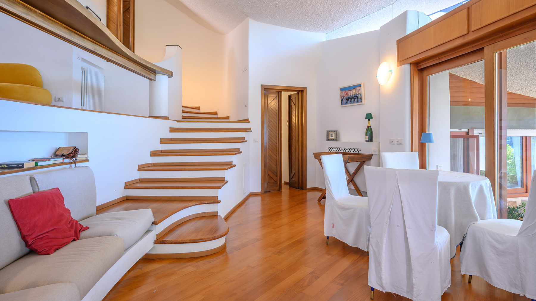 Internamente l’immobile si presenta in condizioni eccellenti, con ambienti ampi, luminosi e arredati con gusto. La zona giorno si sviluppa in un elegante soggiorno doppio con cucina a vista, pensato per offrire comfort e convivialità, mentre la zona notte ospita cinque spaziose camere matrimoniali e sei bagni moderni, rendendo la villa perfetta per famiglie numerose o gruppi di ospiti.