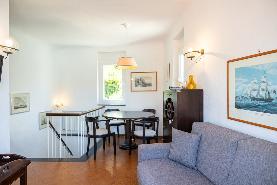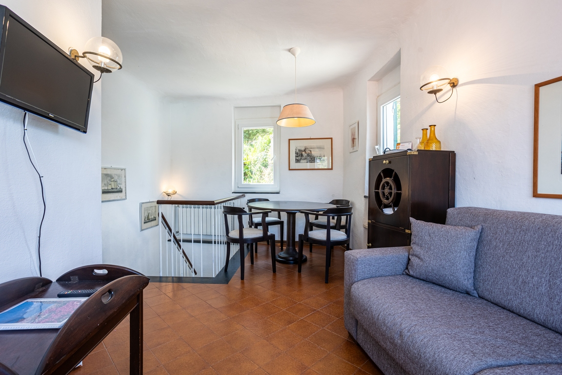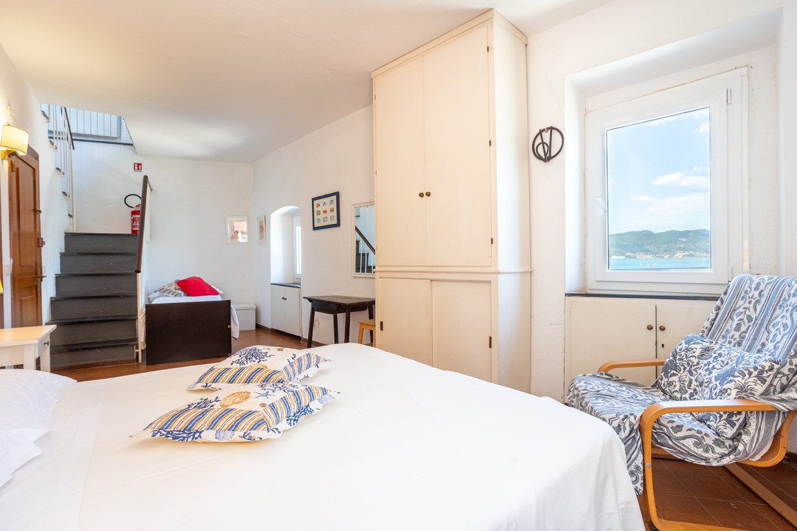 CIN: (IT011016B4EA857WKK) The first houses in Lerici were building under the Castle, all made like a little tower. L'Arpara Casa al Molo is in a pedestrian area and is in two level. Untill Piazza Garibaldi, the main square in Lerici, you can arrive by car or by pubblic transportation, then walk along Calata Mazzini. Near the fish market leads Salita Arpara, is one of the many uphill street with terracotta steps from a tipycal red color from the historical center to the Castle. The entrance is on second floor by a little hallway from a night area, with two sea view windows. Composed of a doublebed, a single bed and a bathroom with shower. On upper floor we found a dining room, a leaving room with double sofa bed, a kitchenette and a furnished terrace with an amazing view overlooking the Poets Gulf. Upon availability is possible book a parking space about 500mt far with a daily supplement not includes in the rent rate. In slow season there are only a sound of sea waves and gulls, while in summer is crowded of people and sound tipycal of this season. We would like to specify that the building does not have a lift and that there will be several flights of stairs typical of Liguria.The price includes: